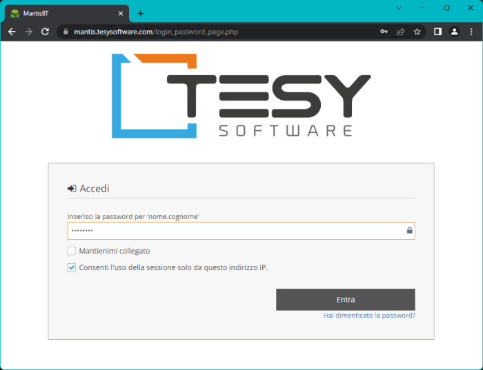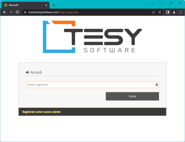 Per la registrazione alla piattaforma Mantis di Tesy Software, è necessario: