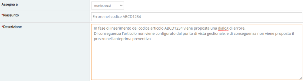 La descrizione deve essere concisa ma esaustiva, per permettere allo sviluppatore di capire bene il problema che dovrà risolvere.