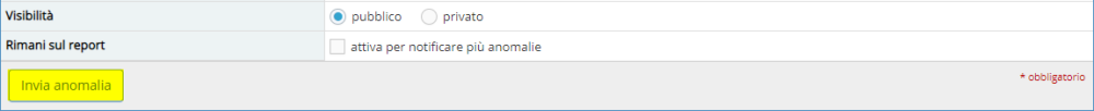 Campo per l'inserimento della descrizione dell'anomalia (obbligatorio).