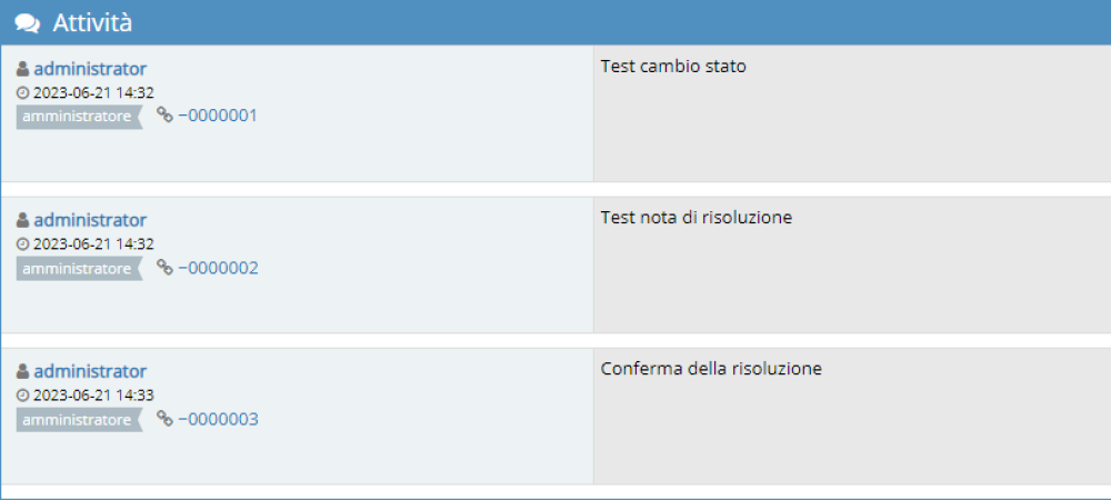 Ad ogni notifica viene aggiunta una nota numerata nel thread, disponibile nel box Attività: