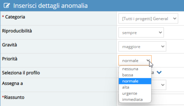 Definisce la priorità da dare alla segnalazione.