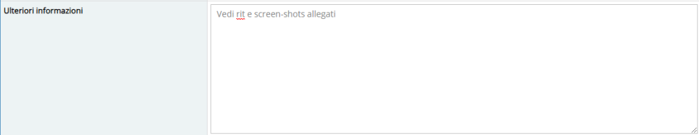 Campo descrittivo in cui inserire ulteriori informazioni o note.