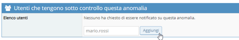 - Eventualmente, aggiungere all'anomalia gli utenti del progetto a cui devono arrivare le notifiche via mail (es capo-progetto, responsabile, ecc.)