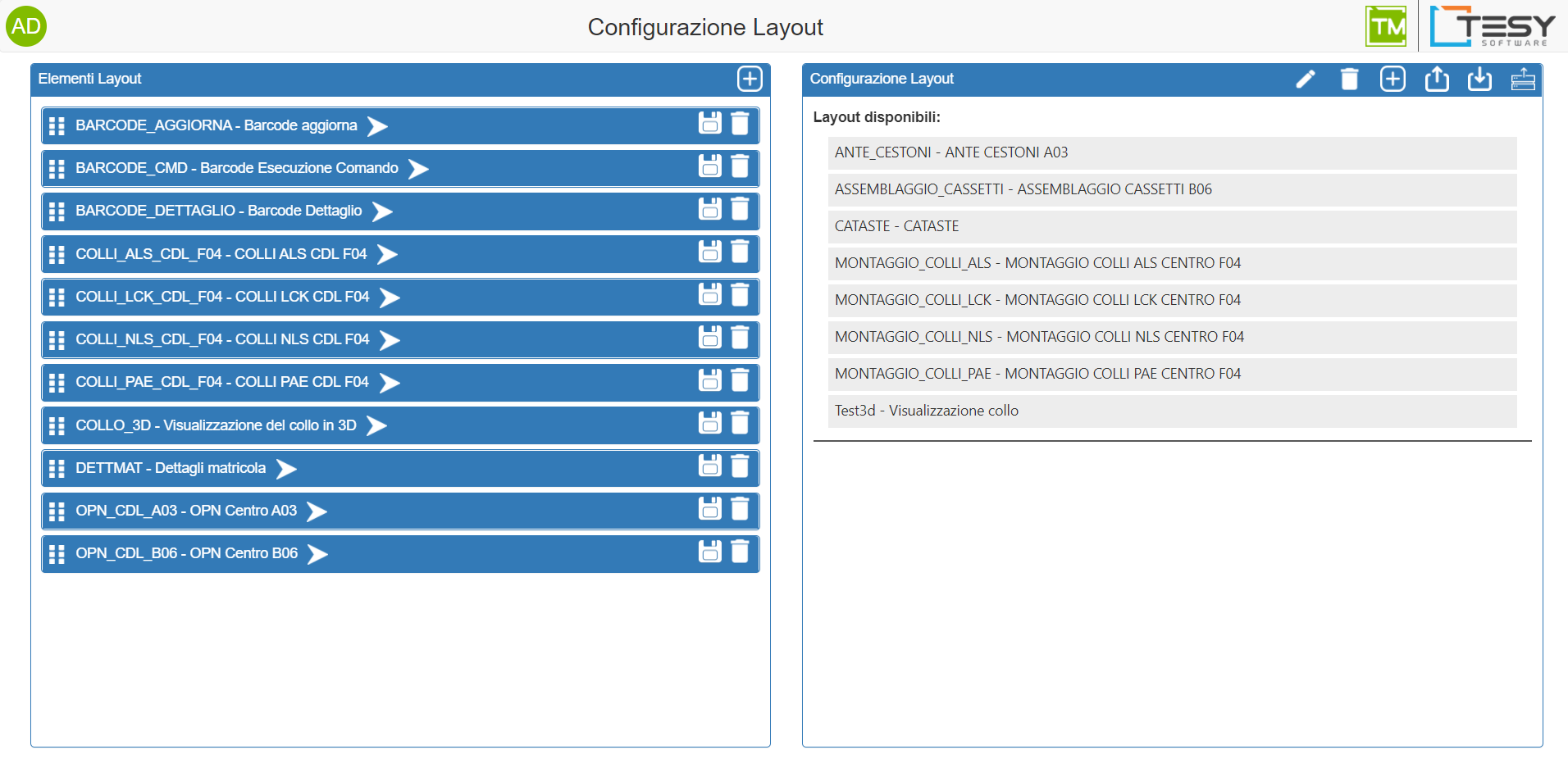 La configurazione Layout è lo strumento TMes attraverso il quale si creano gli ambienti di lavoro personalizzati per ciascun Produttore / Utilizzatore di dati in fabbrica.