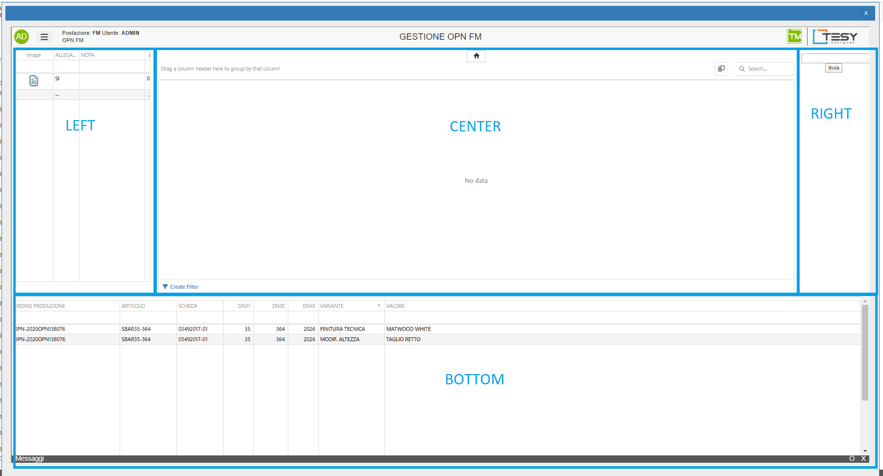 In ogni layout deve essere presente almeno la finestra center, mentre le finestre prive di elementi non verranno visualizzate.