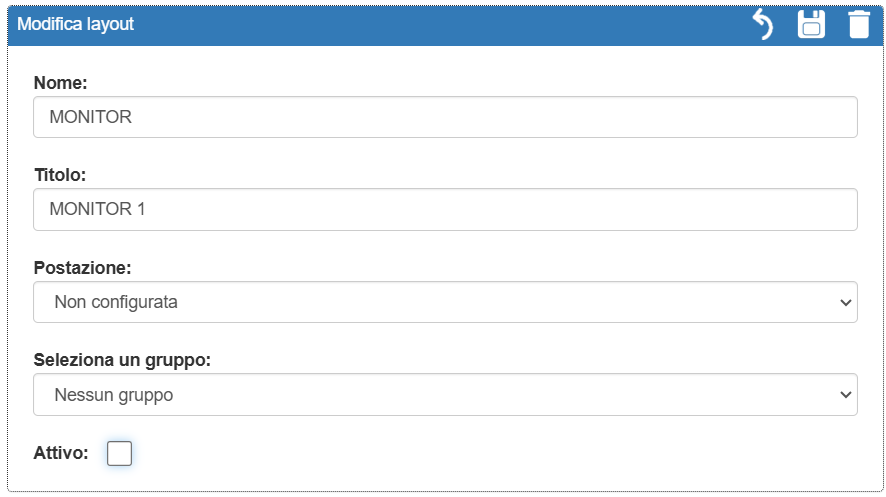 E' possibile rendere il layout visibile solamente a utenti che hanno accesso alla configurazione layout tramite il flag Attivo.