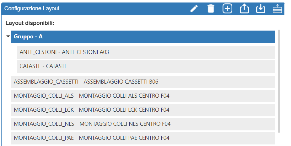 Tramite il campo Seleziona Gruppo è possibile raggruppare i layout nella pagina iniziale.
