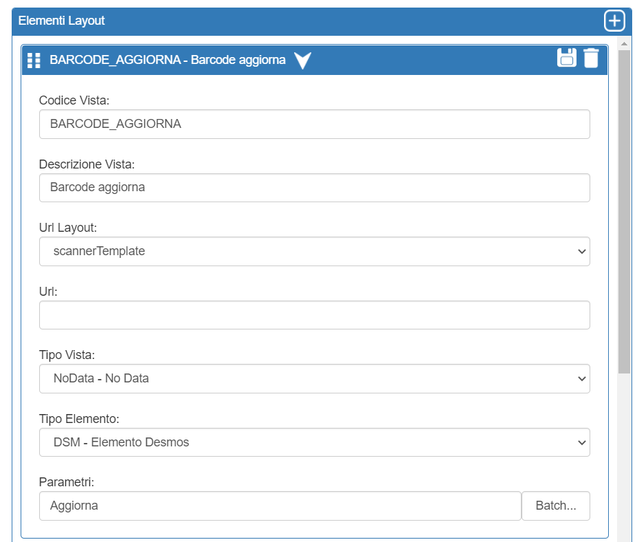 Alla selezione di un nuovo Tipo Vista i campi Url e Url Layout verranno sovrascritti con valori di default
