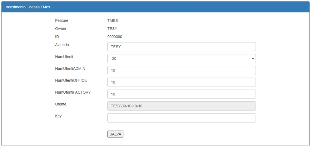 Nella pagina di Licenza è possibile inserire la licenza per l'uso del TMes.