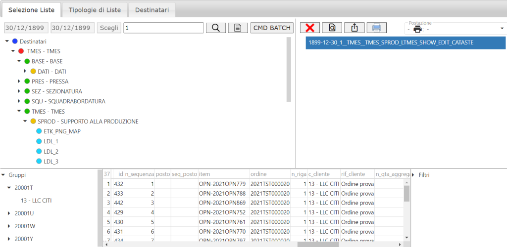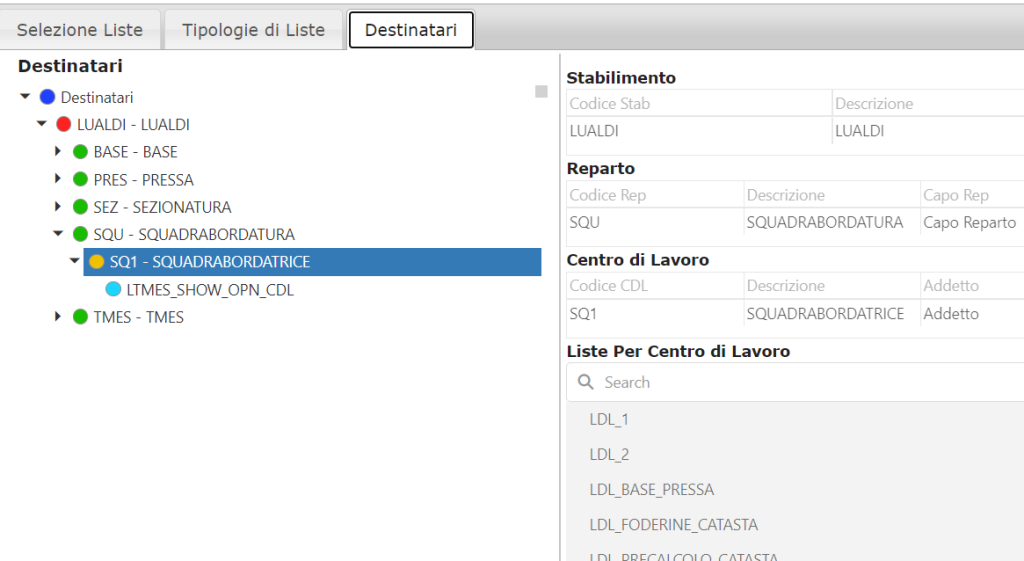 - Se l'elemento selezionato è un Centro di Lavoro verranno mostrate tutte le liste al suo interno.