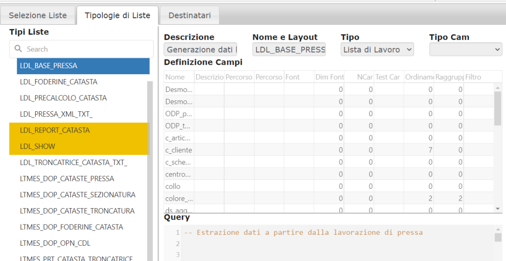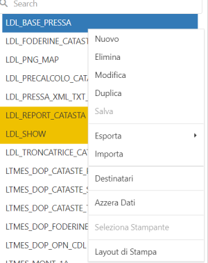 • Layout di Stampa: Consente di aprire List&Label per creare un layout di stampa per la lista.