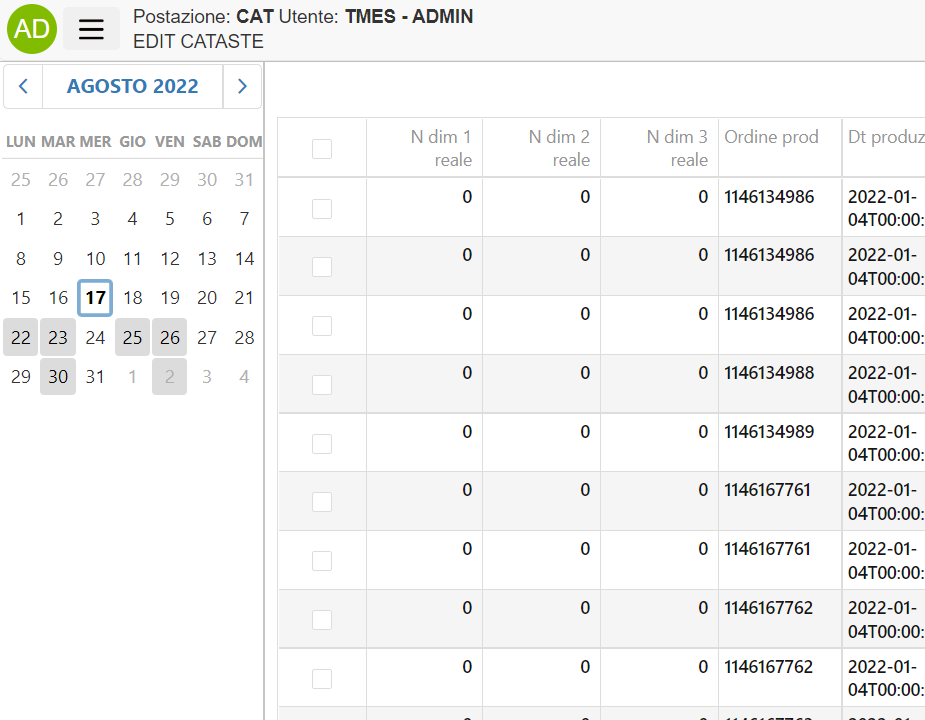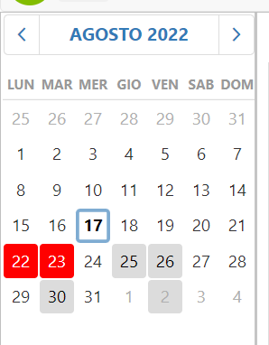 - range: Consente di selezionare un range di date, l'azione specificata verrà eseguita alla selezione di un range, il lancio per l'azione è il range di date specificato (prima data inizio e poi data fine) in formato: AAAA-MM-GG|AAAA-MM-GG