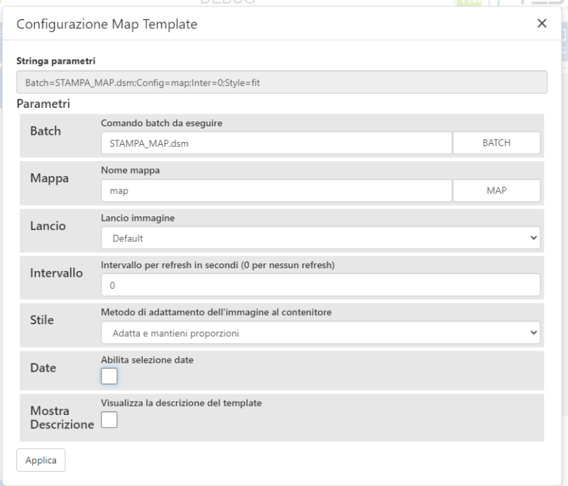 Il Template Map consente di visualizzare immagini create tramite comando batch e sovrapporre ad esse una mappa.