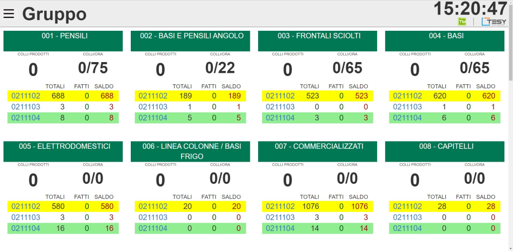 Il multi monitor colli è lo strumento TMes attraverso il quale è possibile visualizzare informazioni relative alla produttività delle postazioni.
