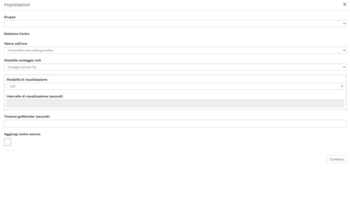 - Valore colli/ora: Determina se il dato visualizzato sarà una media giornaliera o una media dell'ultima ora.